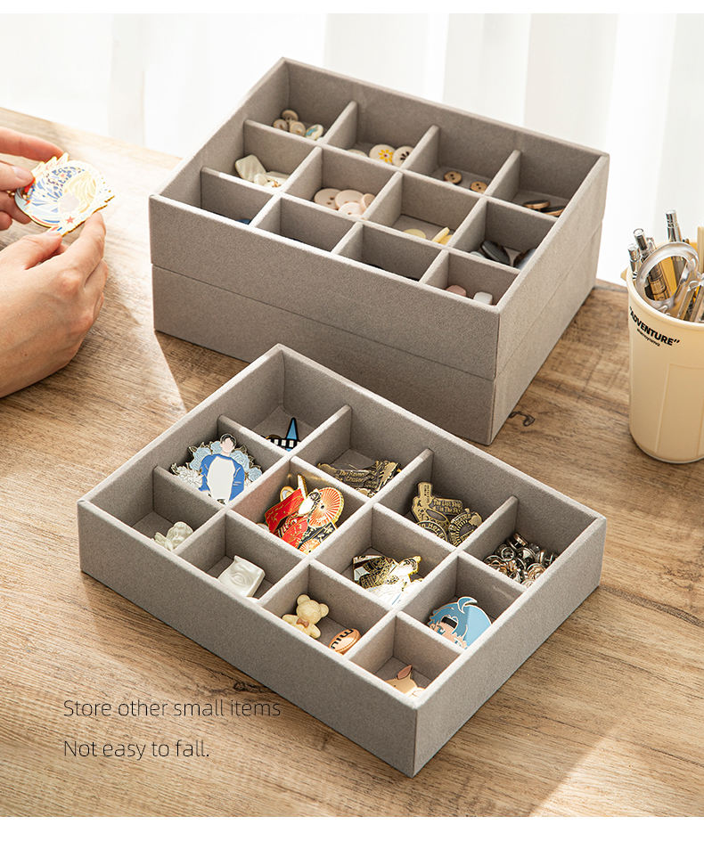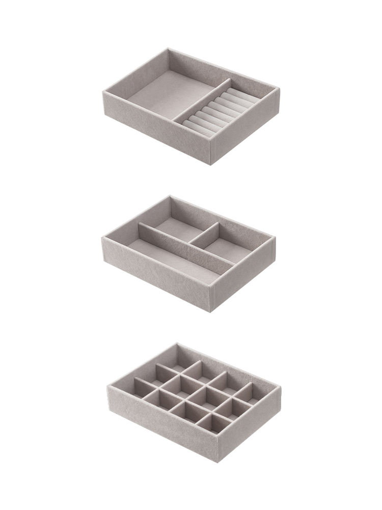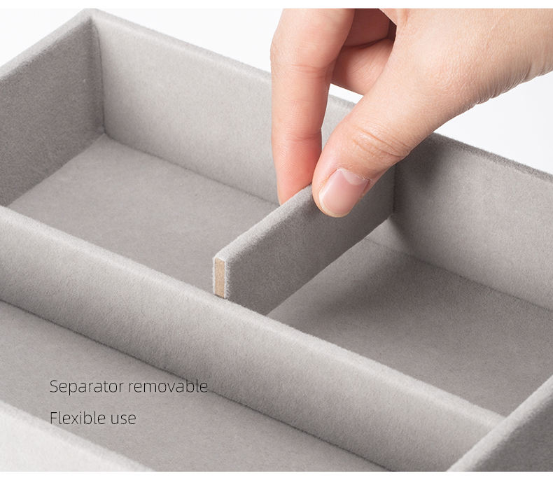Keep your jewelry and accessories neatly organized with the Kopen Grey Flocking Fabric Jewelry Tray. Perfect for homeowners looking to declutter drawers or display watches, rings, bracelets, and perfumes with ease. Its compact, multifunctional design adds style and convenience to any living room or bedroom.