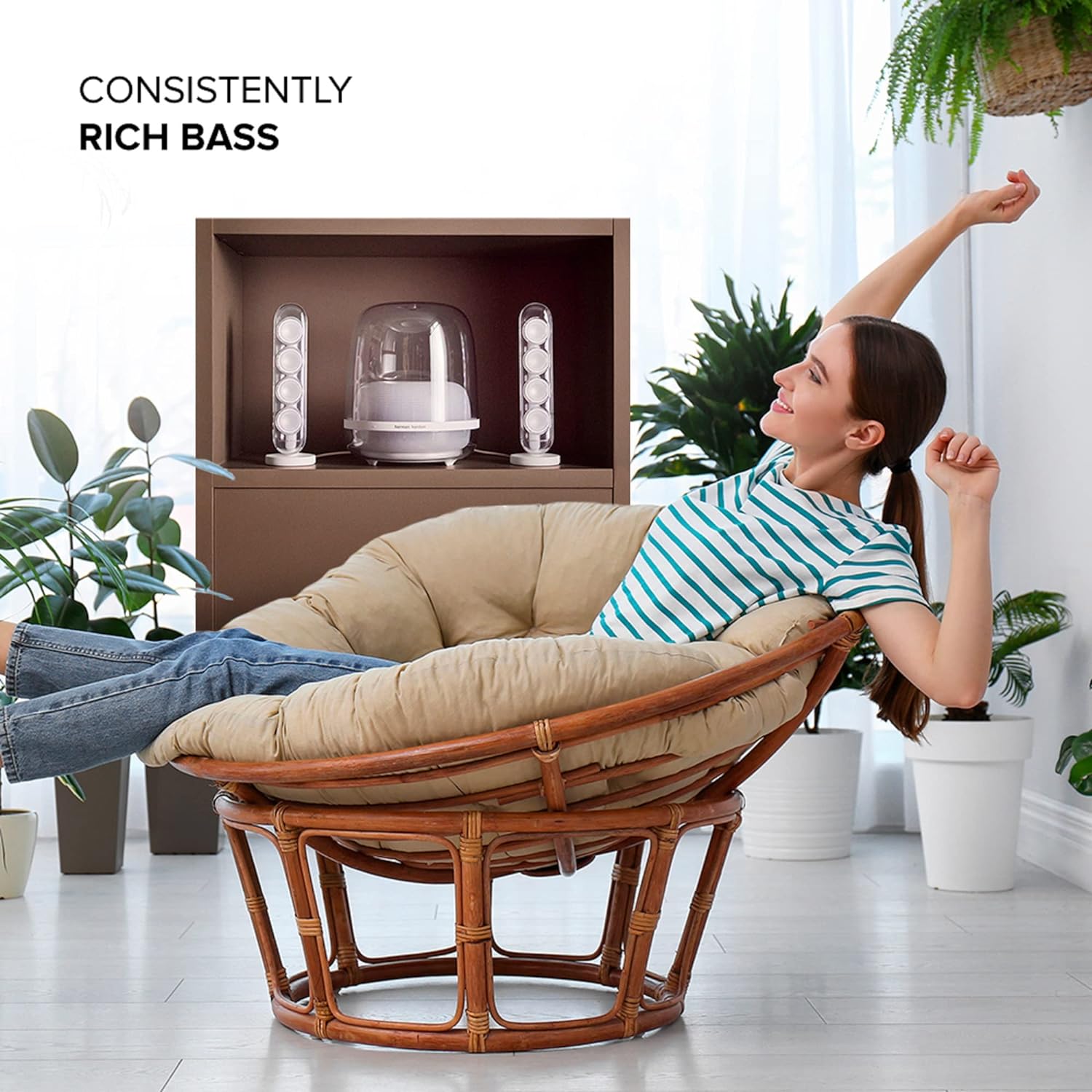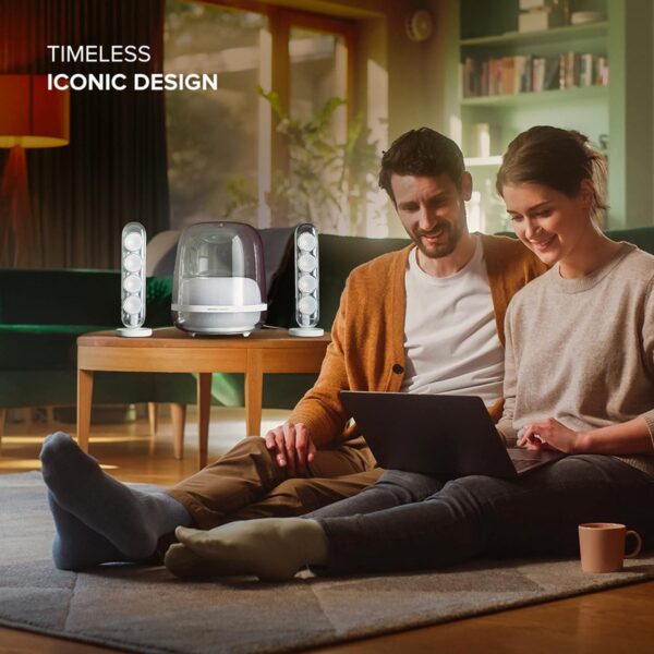Backed by decades of engineering expertise, discover the perfect combination of iconic design and exceptional audio. Enjoy consistently rich bass from the impressive dome subwoofer. And the two satellite speakers each have four drivers, for room-filling, clear, vibrant sound.