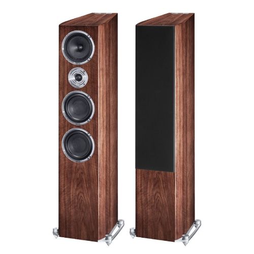 An exquisitely coordinated high-end floorstanding speaker with solid aluminum struts and height-adjustable metal spikes. The optimal weight distribution and acoustic decoupling from the mounting surface ensure an audiophile listening experience of the highest level. All of the frequencies above approx. 2,800 Hz are catered for by the newly developed Fluktus tweeter with its 30 mm PFC dome. The computer-optimized multi-wave front panel of the tweeter ensures perfect dispersion properties, even when it comes to demanding music and film sequences. The bass and mid-range frequencies are catered for by three 170 mm chassis, which accommodate two woofers and a midrange driver. All chassis are equipped with the tried and tested HECO kraft paper cone, which is renowned for its audiophile sound characteristics and high level stability.