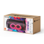 Lights, color, party! Transform your space into a captivating,full sensory experience with the biggest multi-dimensional lightshow of any party speaker. It’s got a unique starry night effect, cool light trails, strobes, and even lights that project onto any surface it’s sitting on. All of it syncs to your music and can be easily controlled via the streamlined, user-friendly dials on the top panel or through the JBL One app.