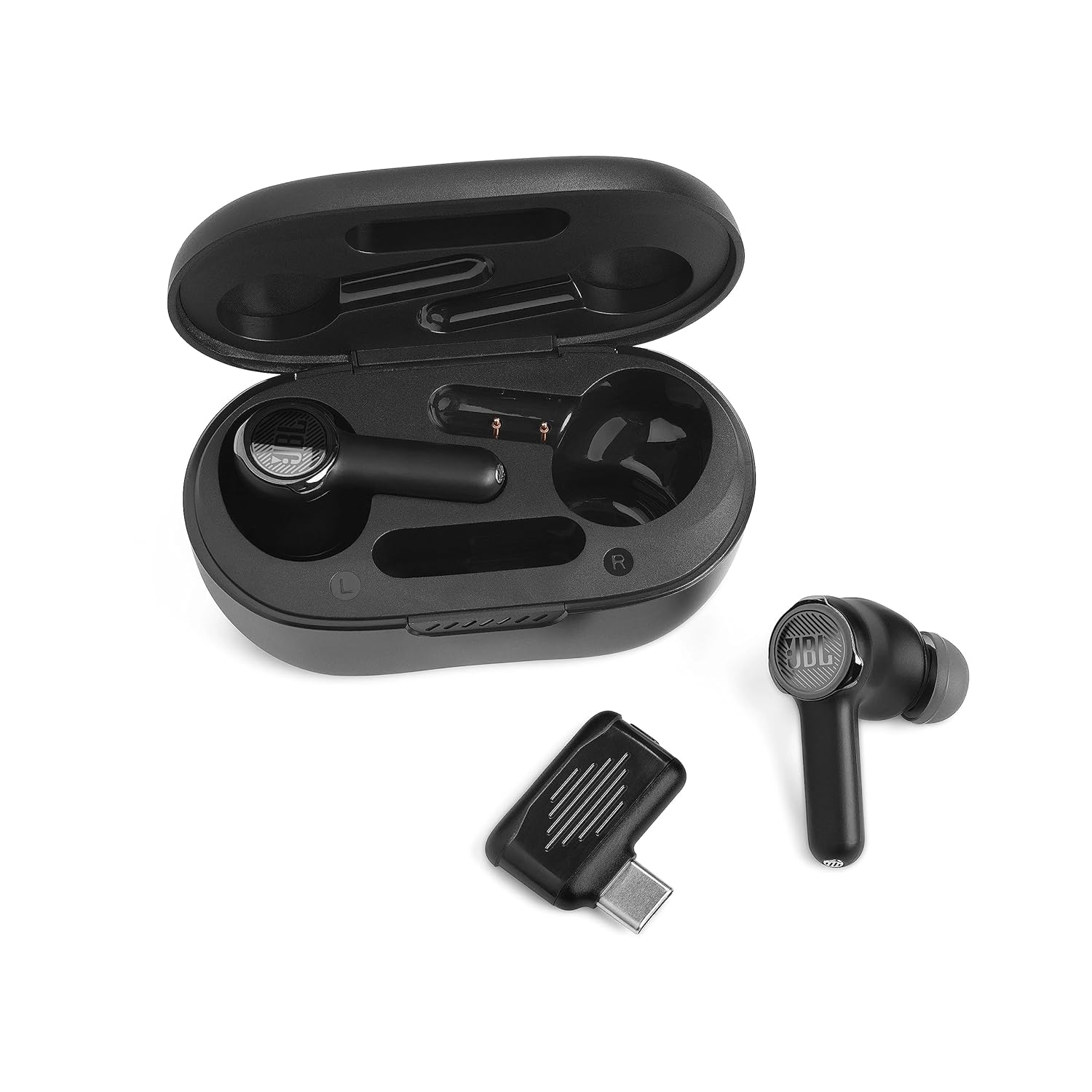 JBL Quantum TWS in Ear Gaming Ear Buds with Mic, Low Latency, Noise Cancelling Bluetooth Earbuds, 6.8mm Drivers, Dual Pairing, 24H Playtime, IPX4, Headphones App, 2.4GHz Wireless Dongle (Black)