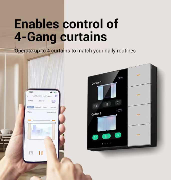 The device supports multi-scene customization, timer settings, and real-time device status display. You can easily create schedules, manage energy usage, or trigger automation based on routines—all through the responsive touchscreen.