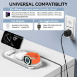 Compatible with iPhone 12 and newer, Apple Watch Series 2 and later, and all wireless charging-enabled AirPods models. A must-have accessory for Apple users seeking smart, reliable, and space-saving charging solutions.