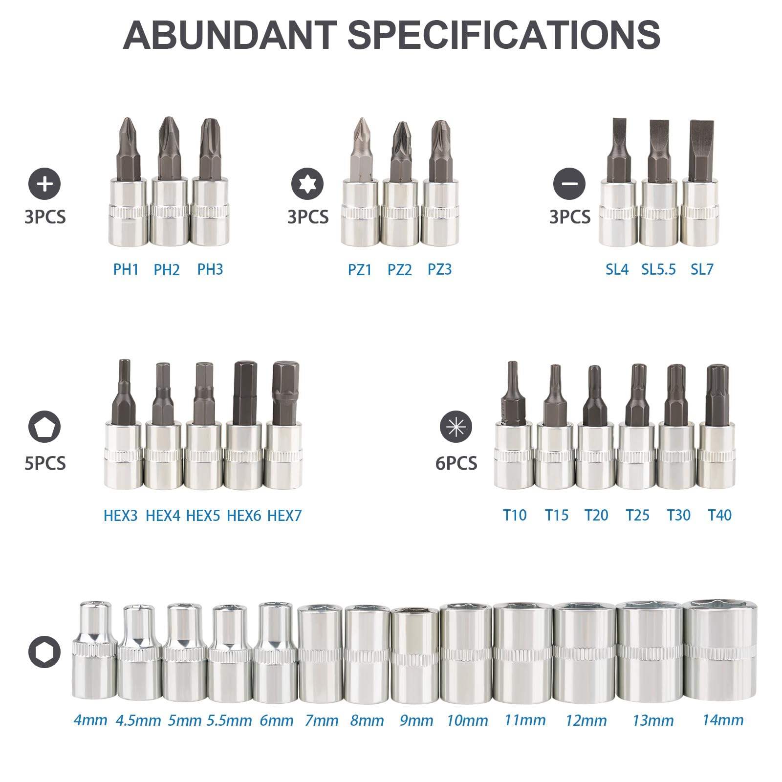 Complete 46-Piece Set: Includes a range of sockets, bits, and a ratchet for versatile repair tasks.