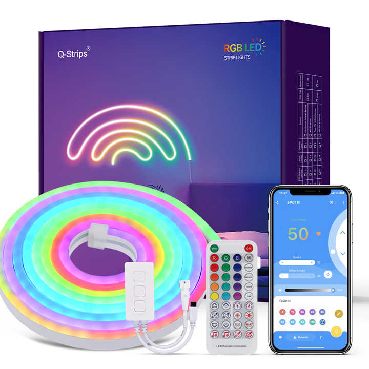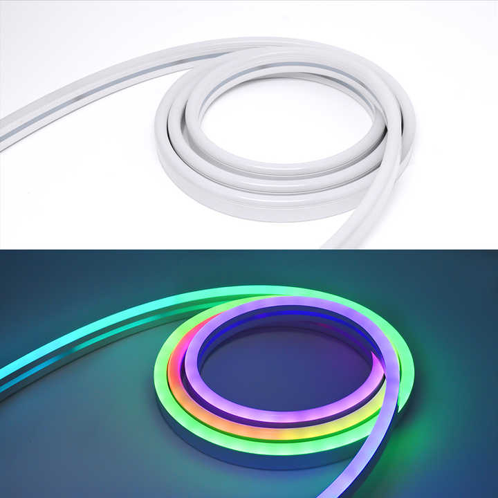 This RGB LED neon light strip offers easy installation, cuttable intervals for custom lengths, and compatibility with multiple remote and app control systems (depending on the controller used). Its uniform brightness, low heat emission, and durable build make it an ideal solution for both residential and commercial applications.