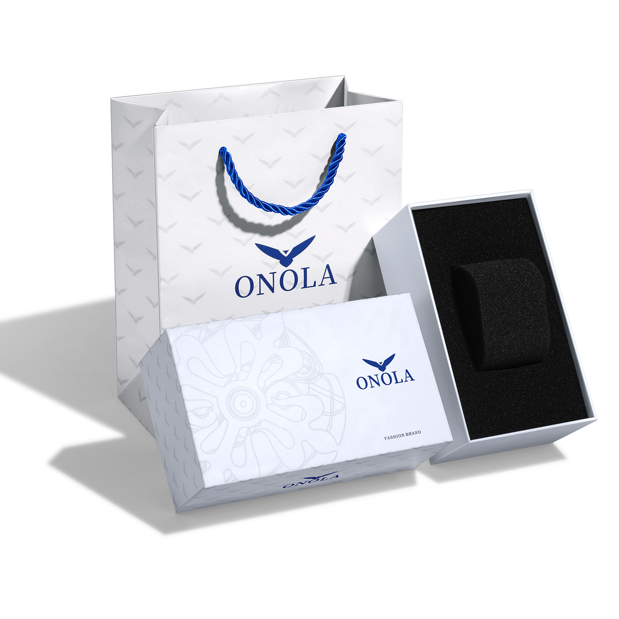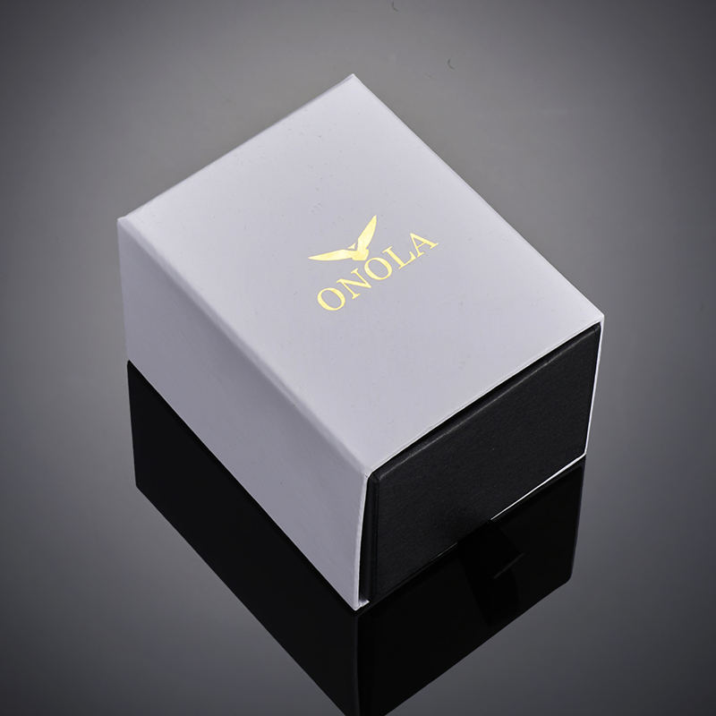The ONOLA Luxury Watch Storage Gift Box is a sophisticated and elegant packaging solution for watches and jewelry. Made from premium synthetic paper with embossing, debossing, and stamping finishes, it delivers a refined, high-end appearance. Designed for both style and functionality, this recyclable box features a sturdy square shape and paperboard lining, making it perfect for gift presentations and luxury retail packaging.