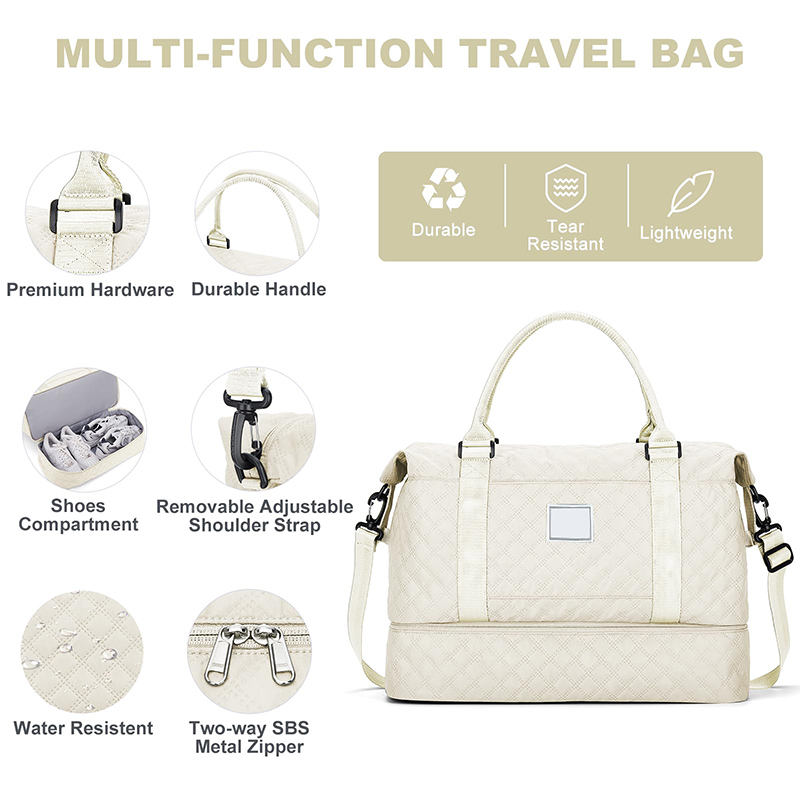 The Kopen Quilted Nylon Travel Duffel Bag is a versatile and stylish bag designed for travelers, fitness enthusiasts, and weekend getaways. Featuring a dedicated shoe compartment and included toiletry bag, it keeps your essentials organized and protected. Lightweight, durable, and customizable in size, color, and logo, it’s perfect for daily use and travel adventures.