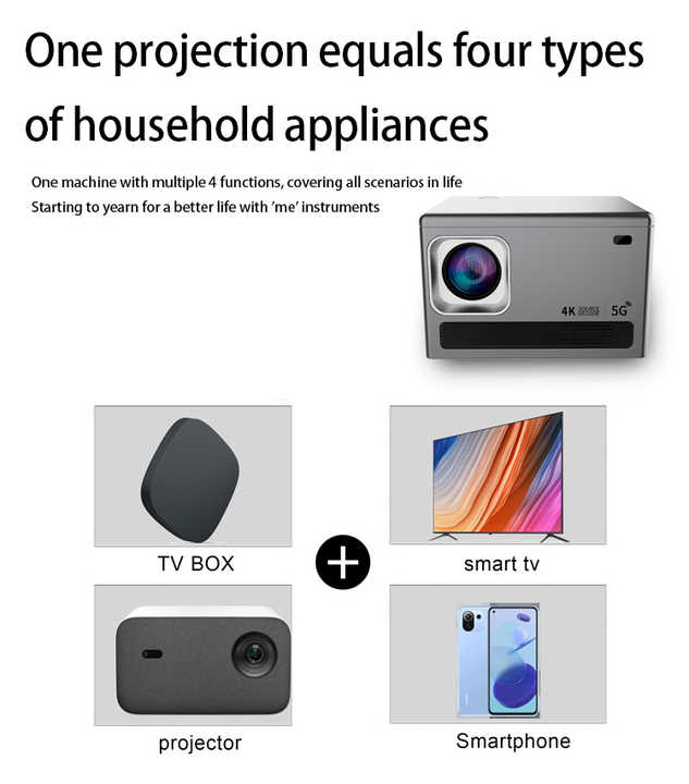 Experience cinematic visuals at home with the Kopen X2 Smart Projector. Featuring 4K support, Android OS, and wireless connectivity via WiFi and Bluetooth.