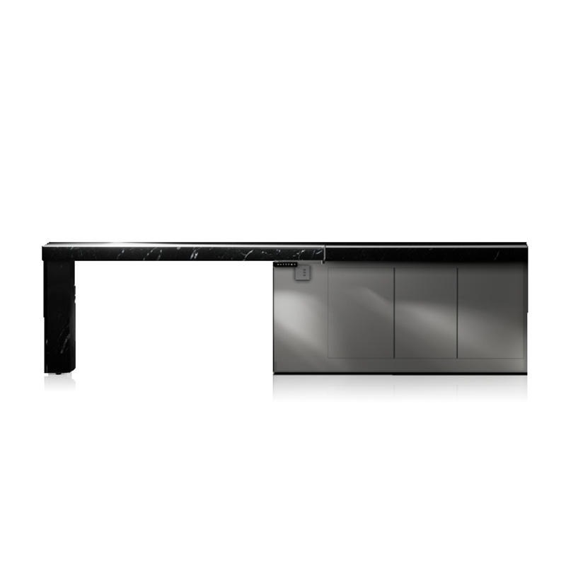 The Tono LX 1 Electric Kitchen Island Extension is a smart solution for homeowners looking to maximize their kitchen space. This innovative system allows you to extend your kitchen island at the touch of a button, providing extra counter space when you need it most. When not in use, the extension slides smoothly back into place, maintaining a sleek and tidy appearance.
