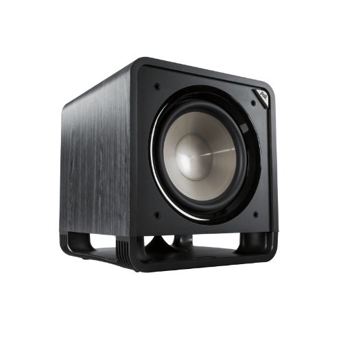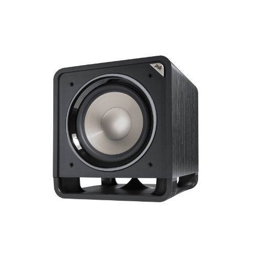 The Polk HTS 12 subwoofer enhances home theater and music listening with powerful deep bass.
