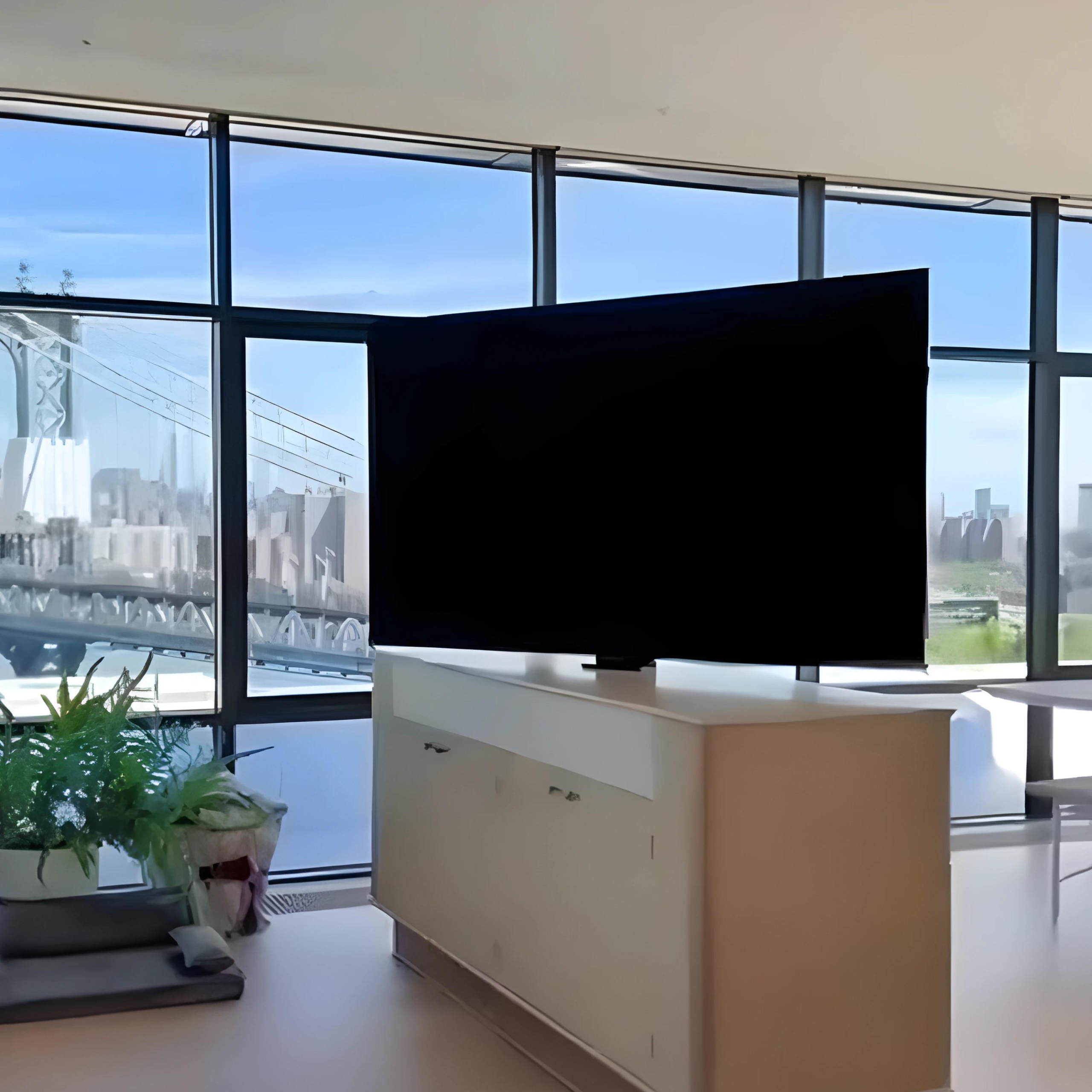 The TL 77s Pop Up & Swivel TV Lift is a clever solution for those wanting to make the most of their living space while keeping top-notch entertainment. This cool system lets you: