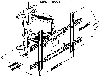 Parameter Specification Model Name Tono R 65 Type Full Motion / Tilt & Swivel Wall Mount TV Size Range 40″ – 70″ Load Capacity 45 kg VESA Compatibility 200×200 / 400×400 / 600×400 mm Tilt Range +10° / –2° Swivel Range ±45° (depends on screen width) Extension from Wall 10 cm – 71 cm Material Cold-Rolled Carbon Steel Finish Matte Black Powder-Coated Product Dimensions (L×B×H) 64 × 4.6 × 43 cm Net Weight ~4.5 kg Package Dimensions (L×B×H) 58.5 × 44 × 6.5 cm Gross Weight ~5 kg Mounting Surface Concrete / Brick / Wood Stud Warranty 1 Year Manufacturer Warranty